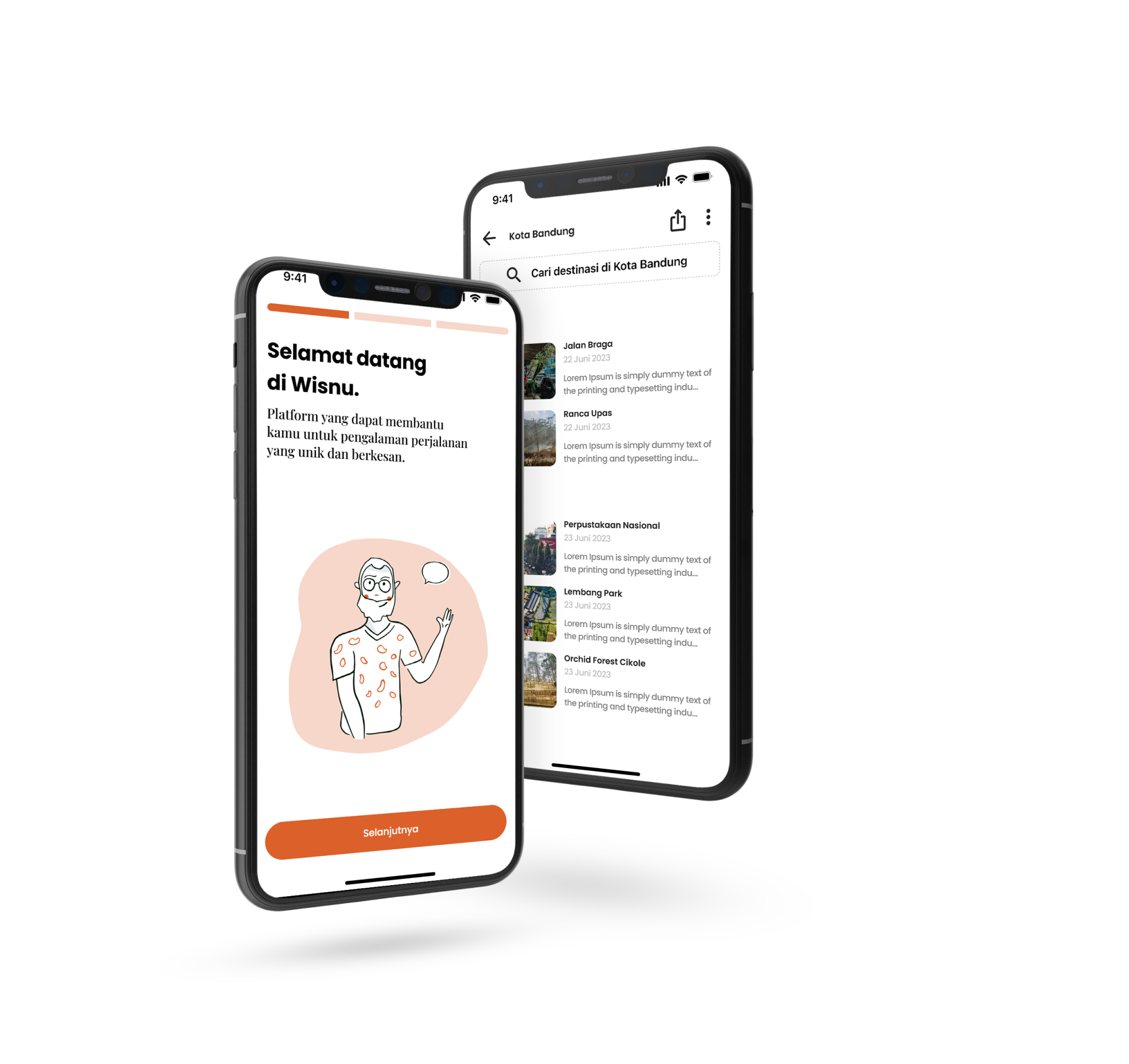 Wisata Nusantara atau Wisnu merupakan sebuah platform aplikasi yang tidak hanya menawarkan wawasan nusantara dan latar belakang destinasi yang mereka kunjungi, tetapi juga Wisnu memberikan rekomendasi rencana perjalanan sesuai preferensi wisatawan. Kami percaya dengan mempromosikan pariwisata dan memberikan pengalaman yang lebih mendalam, kami dapat membantu para wisatawan menemukan destinasi yang baru dan seru, juga menciptakan dampak positif pada lingkungan dan komunitas lokal. Wisnu memiliki penekanan yang lebih kuat dengan mempromosikan destinasi wisata yang kurang diketahui oleh wisatawan di Indonesia, menyediakan rekomendasi untuk beberapa destinasi yang saling berdekatan, sehingga dapat dengan dekat ditempuh, dan menghubungkan wisatawan dengan pemandu lokal. Hal ini dapat menjadi nilai yang unik untuk pengguna dalam mencari pengalaman perjalanan yang beda dan otentik.